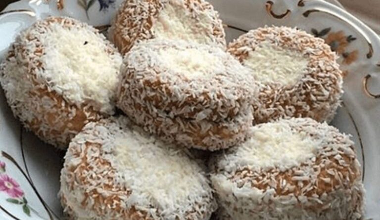 Kolutiće umakati u mlijeko sa rumom, sa manjom kašikom stavljati fil i uvaljati u kokos. Sve to raditi dok nepotrošite fil i kolutiće.