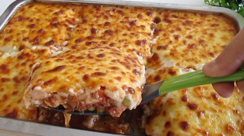 Priprema: Stavite luk u nauljen tiganj i ostavite da se dinsta, pa mu dodajte sitno iseckanu papriku, a zatim i piletinu isečenu na komade. Mešajte dok se kuva, pa dodajte i samleveni paradajz, sos, začine i mešano povrće. Sipajte vrelu vodu i ostavite da se sve još malo krčka. Pomešajte sve sastojke za bešamel sos u šerpi, pa skuvajte. Izručite piletinu sa povrćem u tepsiju, premažite bešamel sosom i još izrendajte kačkavalj. Pecite u rerni na 180°C oko pola sata.