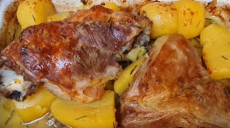 Dobro usoliti jagnjece meso. Dodati ulje ili mast. Staviti ruzmarin i glavicu belog luka rasecenu na pola.Dodati i 50ml vode. Staviti aluminijumsku foliju preko pleha i staviti da se pece 1h na 220°C. Posle 1h skinuti foliju i okrenuti meso. Iseci krompir na krupnije komade i staviti zacin. Izvaditi meso okrenuti ga i dodati krompir. Vratiti foliju i staviti da se pece jos 1h na 220°C. Posle sata okrenuti meso i krompir. Vratiti u rernu na 30 min ali bez folije. Posle 30 min ponovo okrenuti meso i krompir kalo bi se dobila lepa hrskava i rumena korica. Peci na 220°C 30 min ako vam je jaka rerna na 200°C.